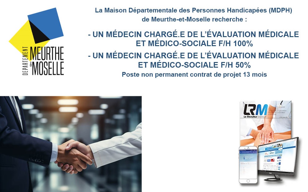 MEDECIN CHARGÉ DE L’ÉVALUATION MÉDICALE ET MÉDICO-SOCIALE (F/H) 100%